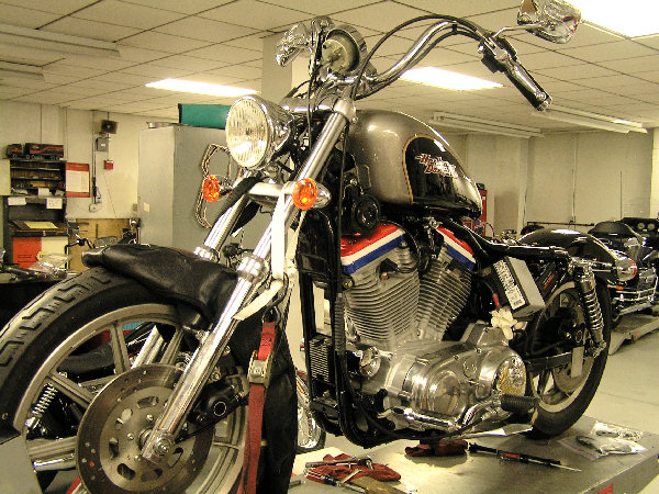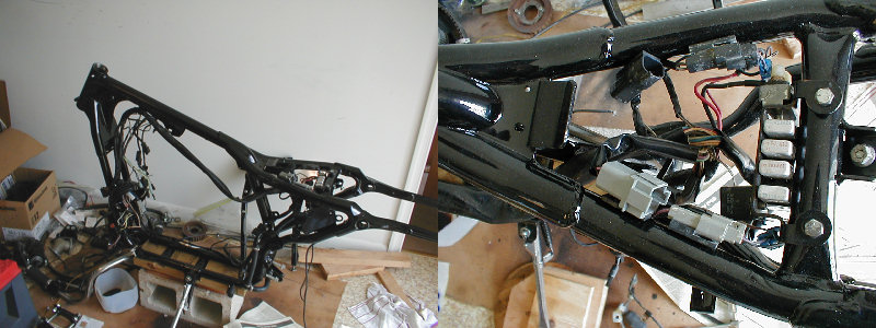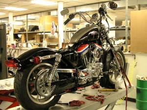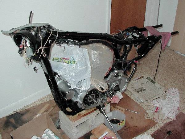 - After collecting the parts, (mostly various year take-off parts that were no longer needed by the sellers who were upgrading their bikes) with some being stock ‘94 and some other years, the bike was stripped and a replacement frame was ordered from the MoCo.