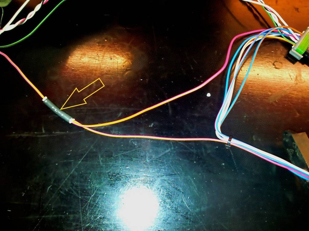 First the speedo loom as it comes on a 2014 and later Canbus model Sportster Now with the outer conduit removed……the cable ties were put on by me to keep the shape of the wiring Wiring separation between speedometer connector and instrument tell tale light cluster The arrow signifies where there is a solder join on the red/orange 12volt power wire going to both the speedometer connector to power the circuit and also to the light cluster to provide power to the circuit board and LEDs.