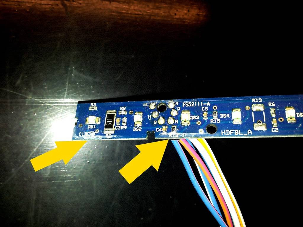 I personally found it easier to start from top-to-bottom; that being exposing the PCB, hook a multimeter to the LED’s terminals and check for foul play.