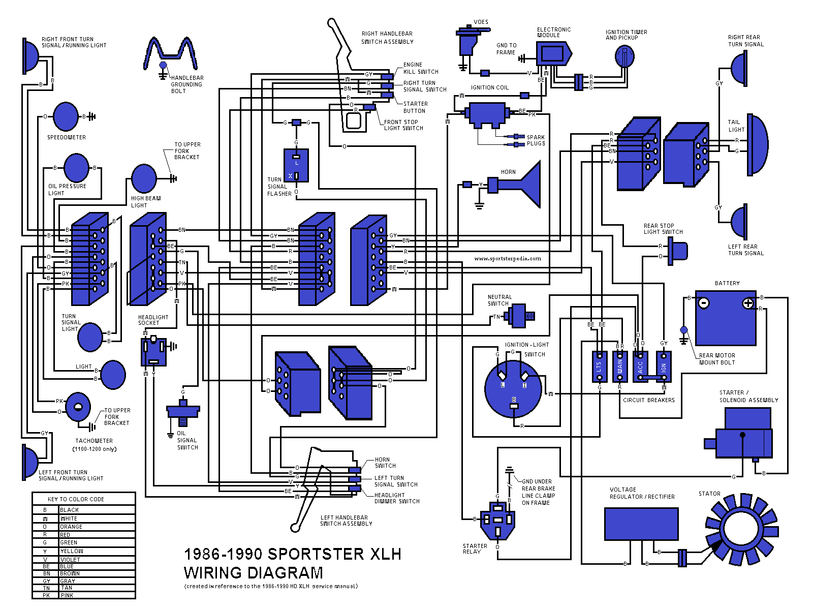 Despite this drawing representing what an actual HD wiring diagram shows, the Voltage Regulator is shown connected to the wrong side of the Main Circuit Breaker. For the sake of safety, ALWAYS connect the Voltage Regulator on the opposite side of the Main Circuit Breaker from the side where the battery is connected. Please remove the Voltage Regulator connection & reconnect it to the opposite side of the Main Circuit Breaker if your bike is wired as shown on this & the HD wiring diagram.