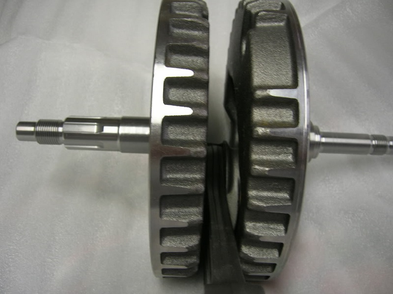 The twisting torque applied to the pinion nut gets transmitted through the crank, from one side to the other.