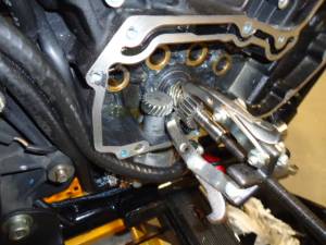 Navigate to the appropriate year model transmission pages in the Sportsterpedia for removal/installation.