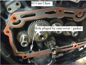 They drill that hole to connect the two passages, and then it gets blocked off naturally by the cam box cover and gasket. 20)