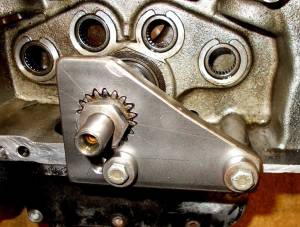 1977-up Sportster engines have an internal rifling hole drilled into the lower left side of the case running past the left side of the oil pump.