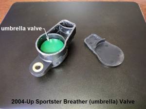 2004-up Sportsters have (2) umbrellas (one in each rocker box inside a sealed plastic breather unit).