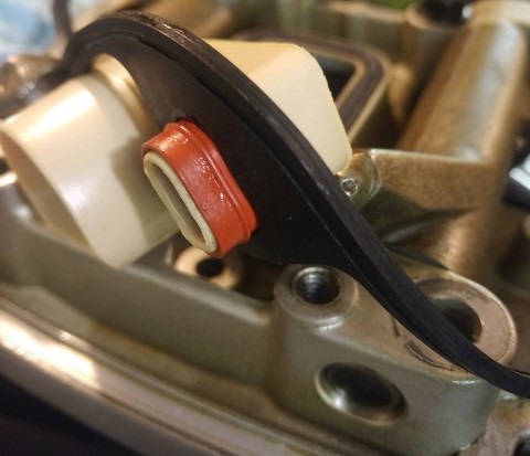 The pictures shown with the brown breather and no orange seal are of the original configuration. There are no known sealing issues here.