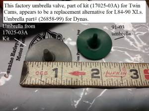 This looks like a good factory alternative replacement umbrella valve that comes in a replacement kit for Twin Cams.