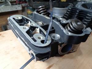 - Air pressure is designed to continue up past the umbrella valve and exit a hole in each head on the intake valve side.