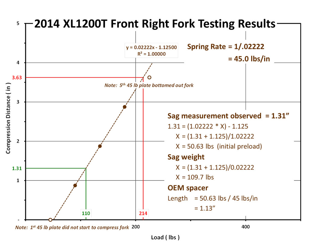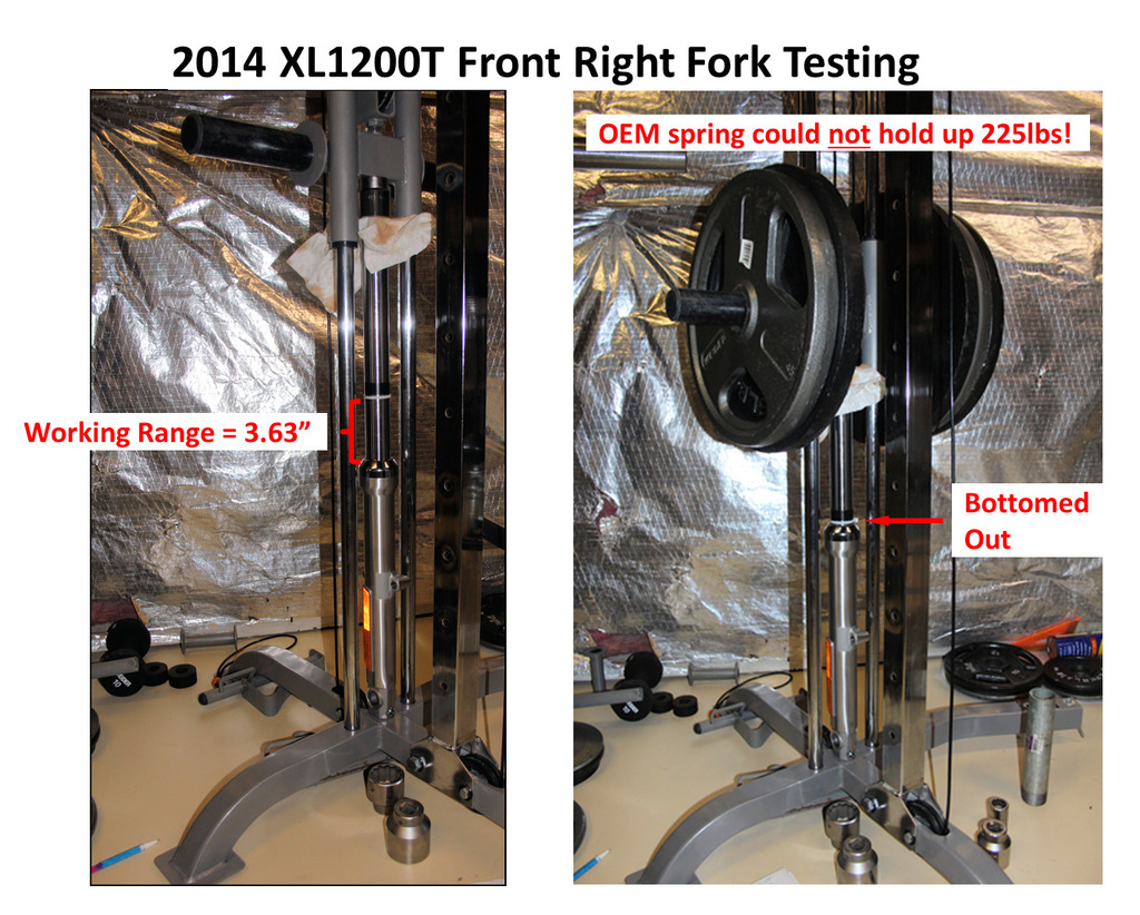 2014 XL1200T Front Fork Testing w/ Spring Rate Charts