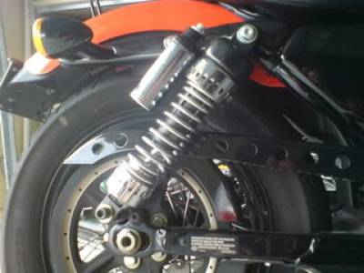 I sent an email to XLXR entitled “OMG!!!” which pretty much sums up the world of difference these shocks make from the stock shock. He replied “Can I say I told you so….” And yes, he did tell me so, and yes, he was dead right. As a reminder I'm 5'3“ in my boots and 140lbs. I've been for a couple of rides since installing and have been adjusting a bit as I go. At the moment I'm 2 clicks from none on the preload to get the rider sag; 6 clicks from hard on rebound and 3 clicks from hard on compression. That was nicely suited to the twisty mountain run I did this morning. Yesterday I was three clicks softer on both for a freeway run and the bridge joins were hardly noticeable. No problems at speed. And the kickstand didn't scrape anything, not even the speed bump.