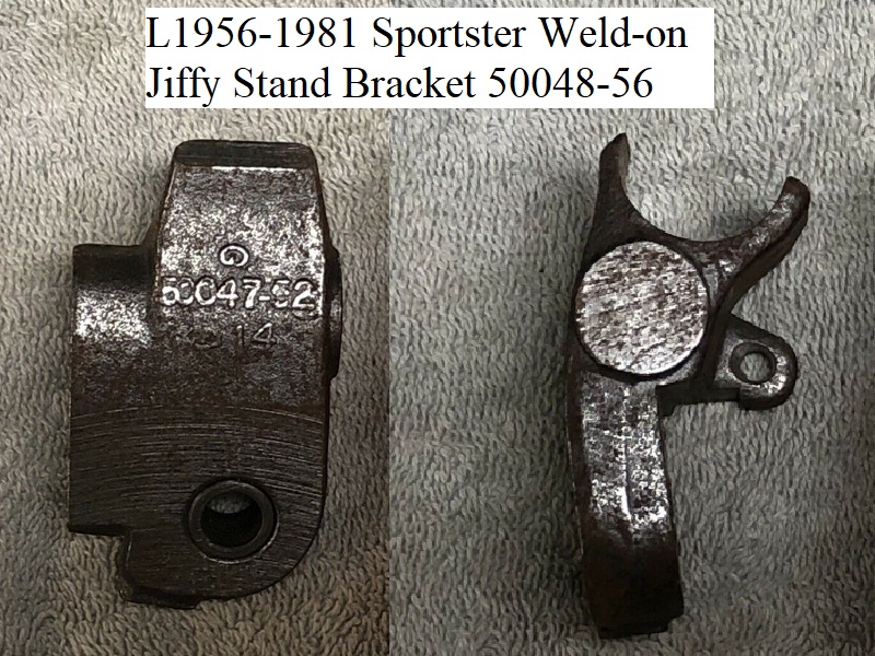 1957-1981 Sportsters use the same jiffy stand weld-on bracket part# (50048-56). The casting number is 50047-52.