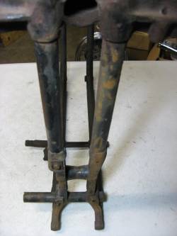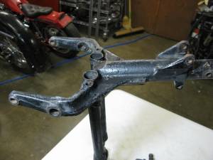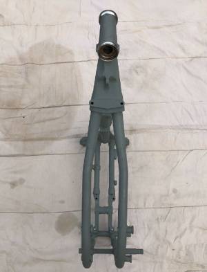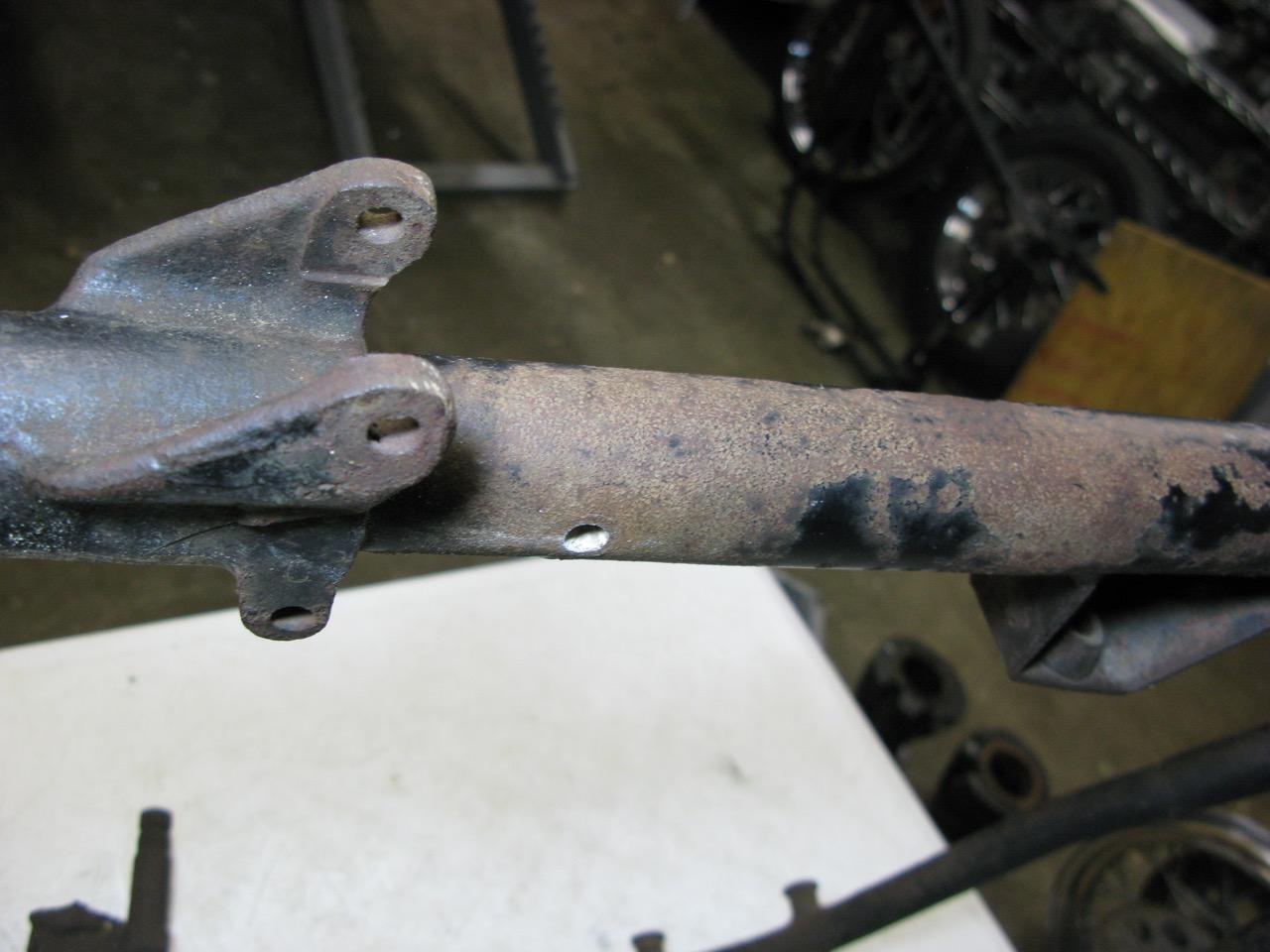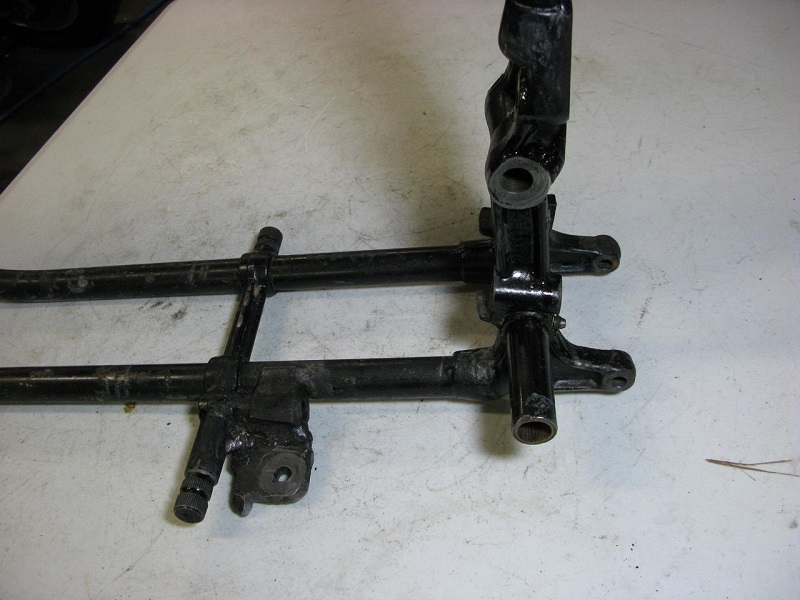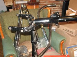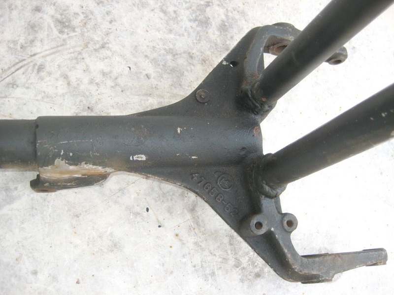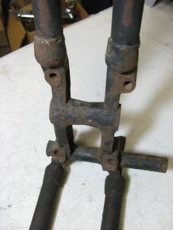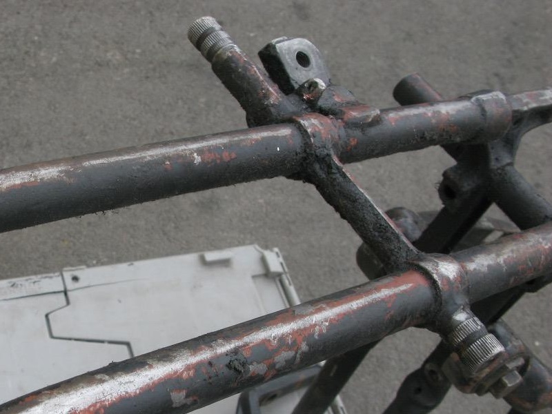 A round tube was used instead of the original to connect and brace the left and right tubes but the jiffy stand bracket remained the same.