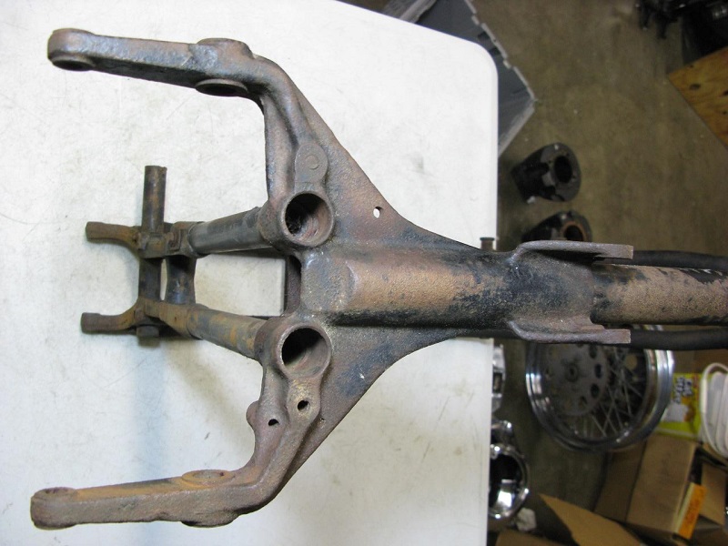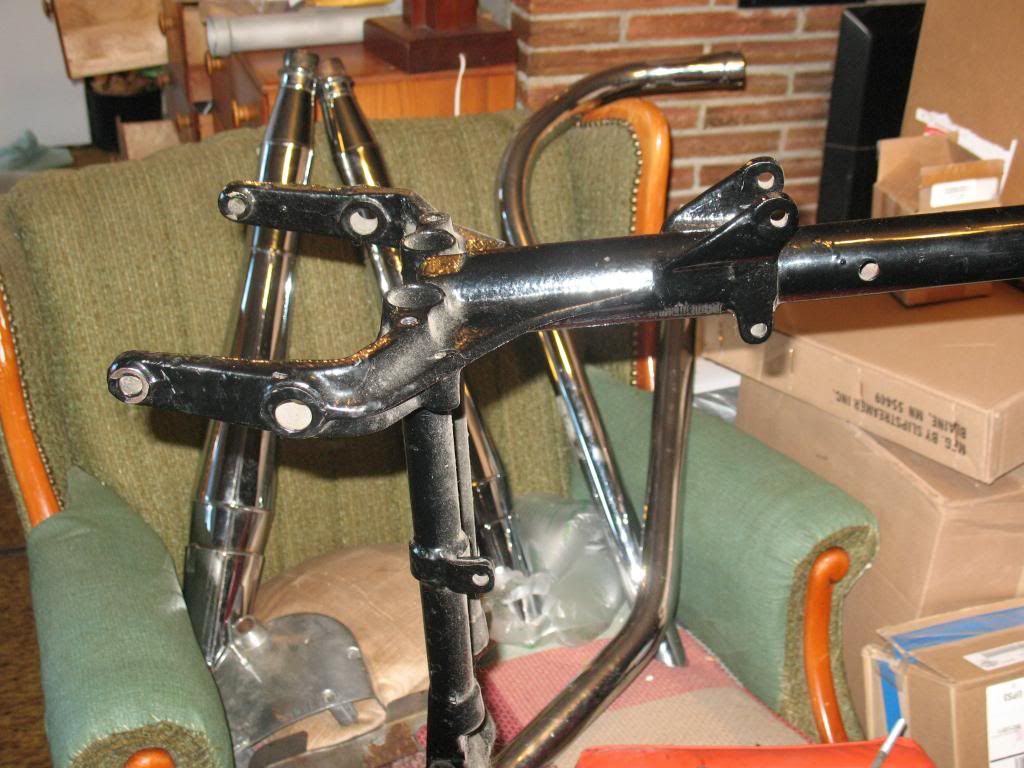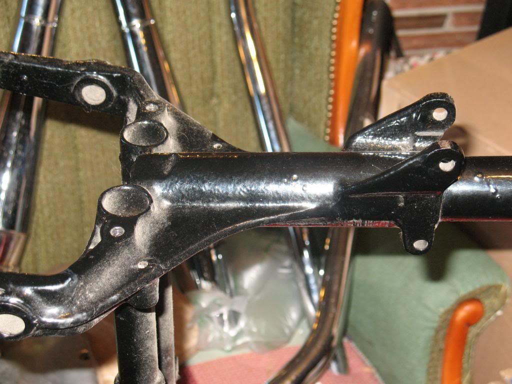 The early 1973 frame doesn't have the angled bracing welded on the rear.