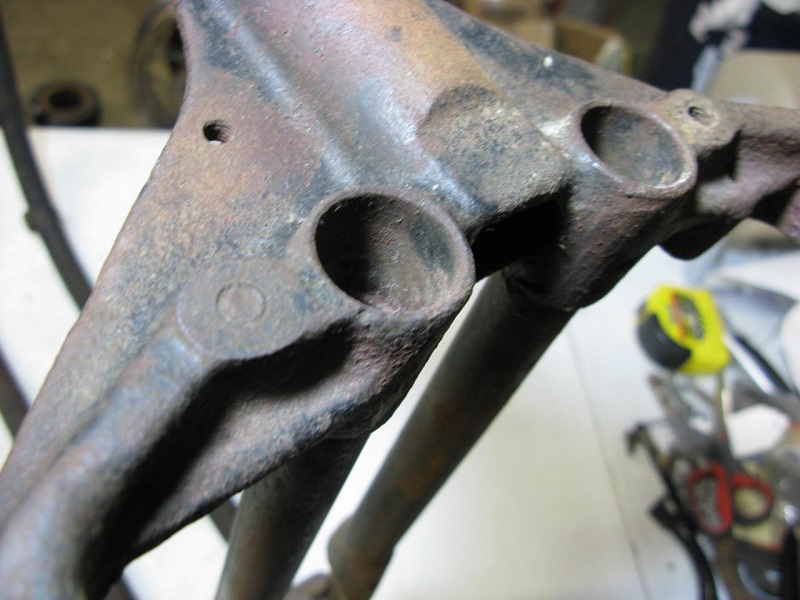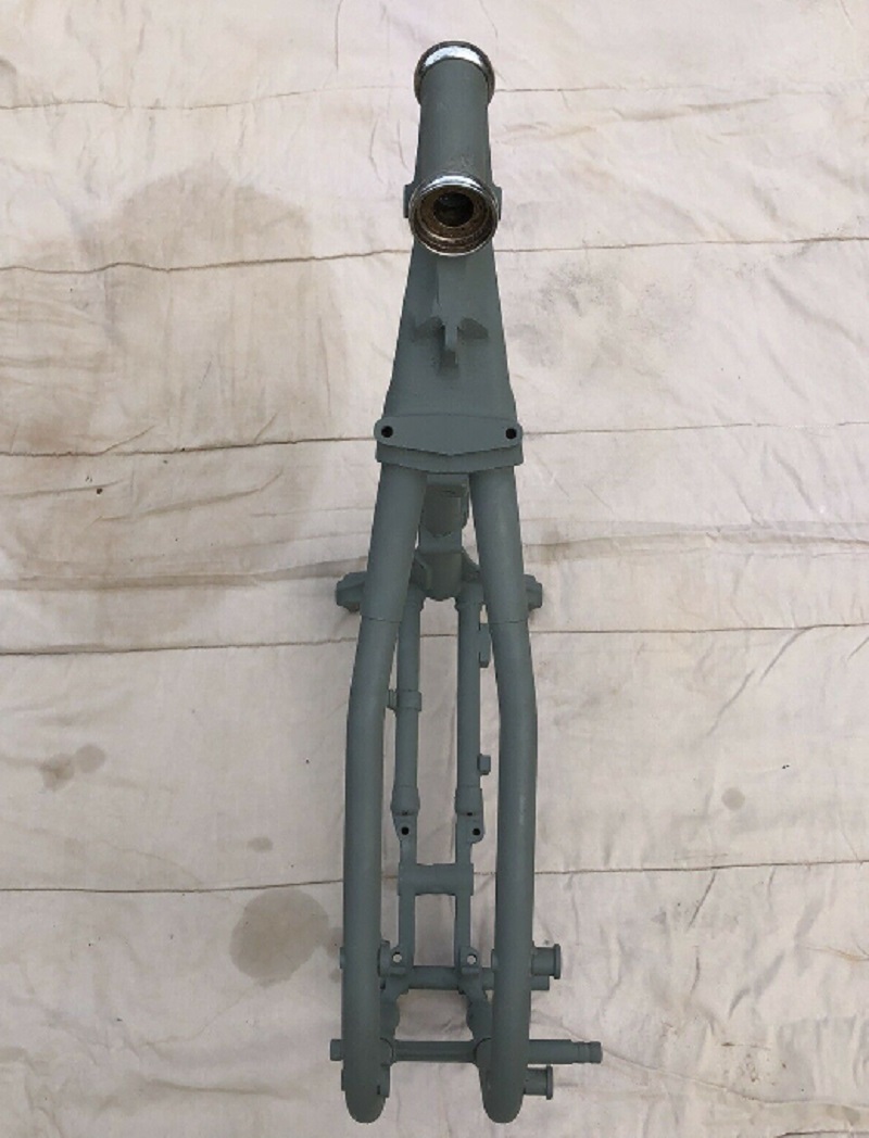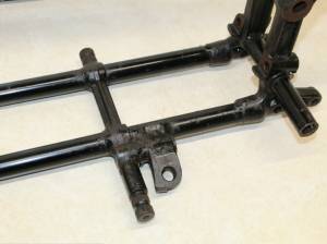 These frames also have the “Wedding Band” strap on the right post for the oil tank bracket (as well as two threaded holes on the bottom of the casting for the oil tank).