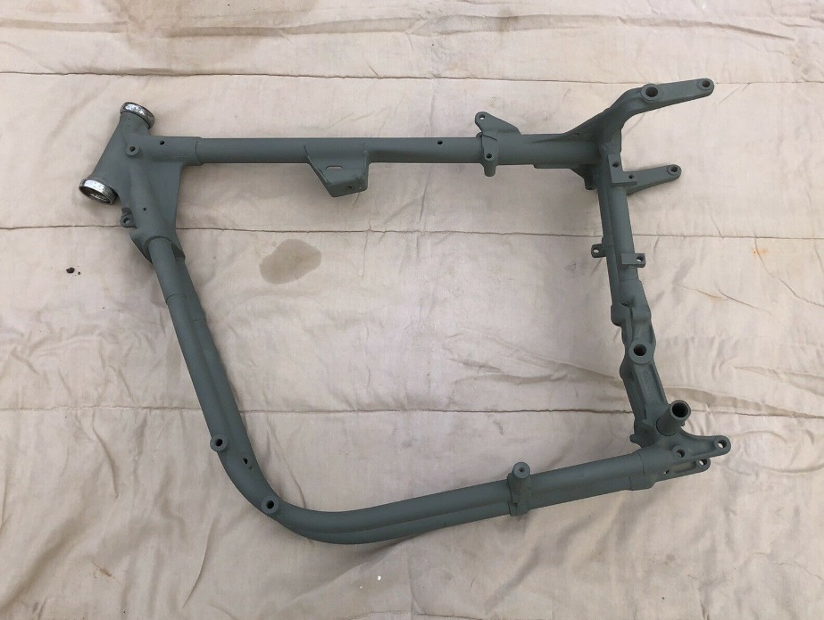 The “dogleg” H or “long” frame debuts in 67, and provides additional room for the electric start apparatus, which also debuts that year along with the one inch longer swingarm.