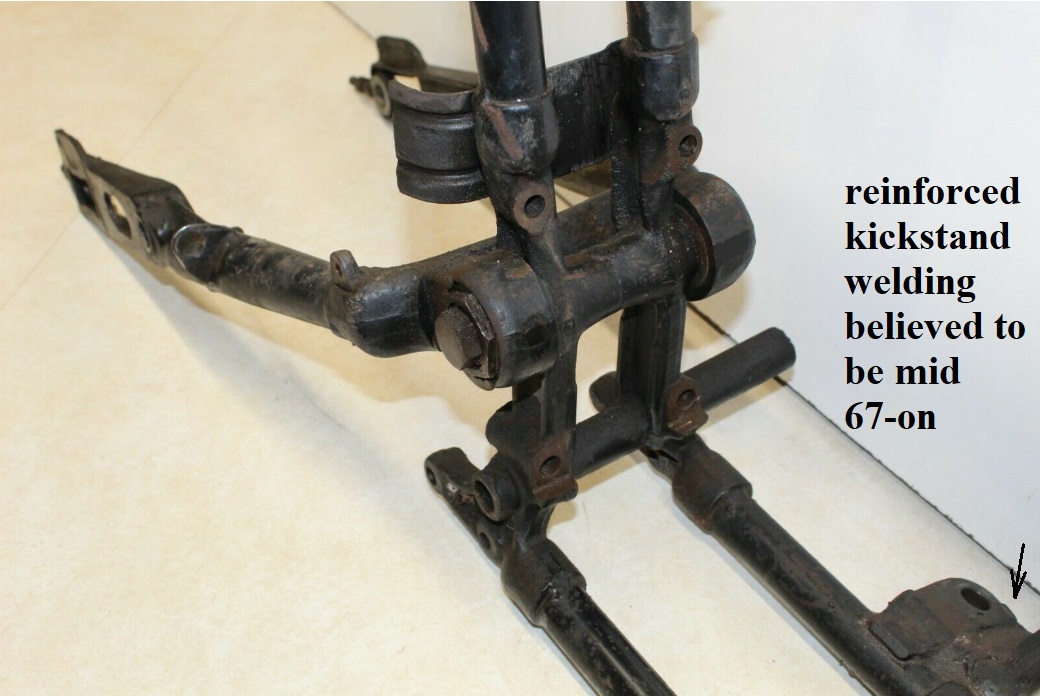However in 1965, the seat casting had a change to where a flat boss was made under the right side at an angle but the frame part number didn't change in the parts book.