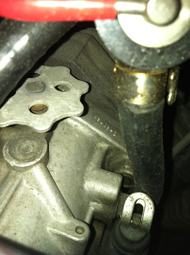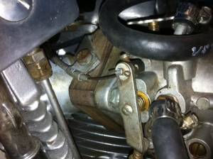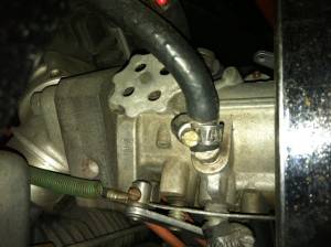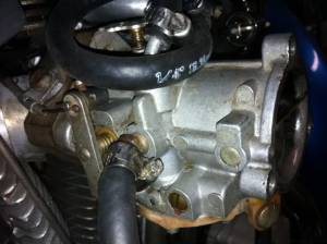 Attach a small nylon cable tie underneath carb from one of the cover screws.
