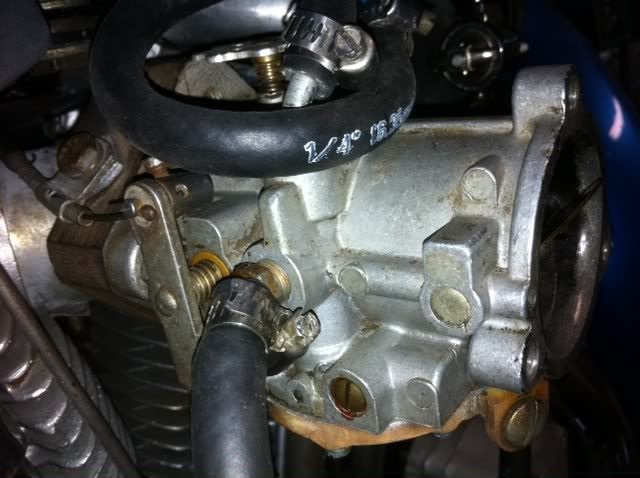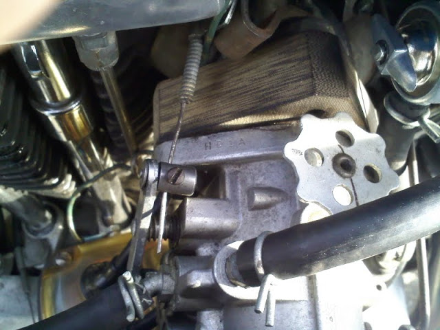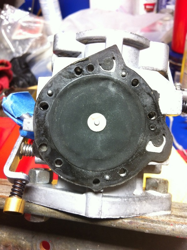 You can then poke (tickle) the diaphragm up through the vent hole in the middle of the plastic cover to flood it. Or adapt a tickler from a GB Amal carb.