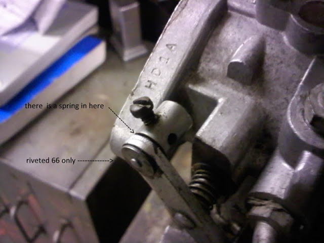 Early 66 (1966 model), HD1A: diaphragm lever and fuel valve without fork. Fuel valve brought down by gravity only. 3)