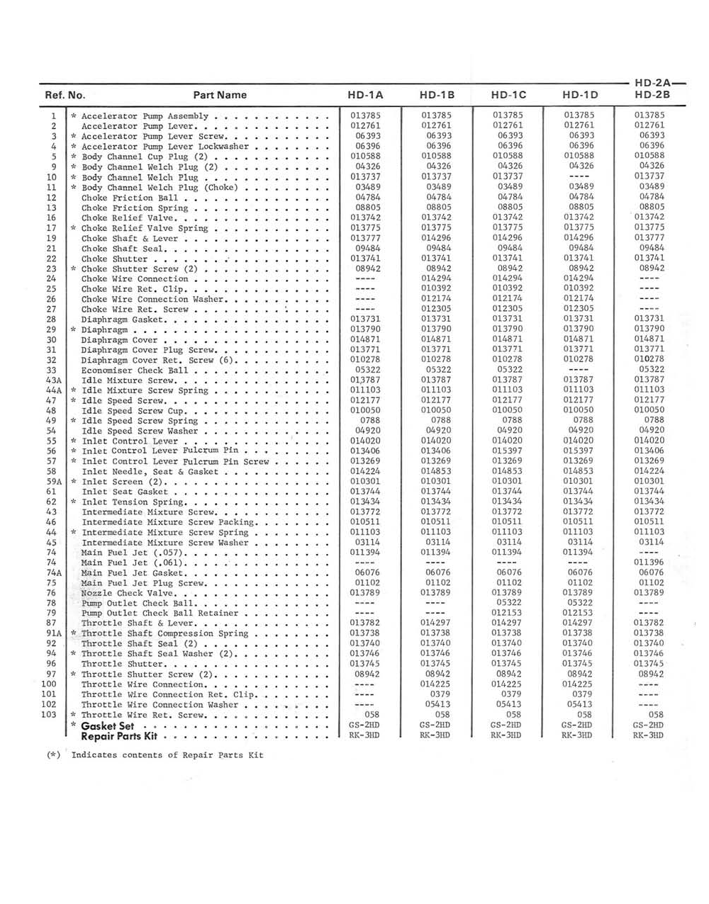 | 1 | 27760-66 | * Accelerator Pump Assembly | 013785 | 013785 | 013785 | 013785 | —- |