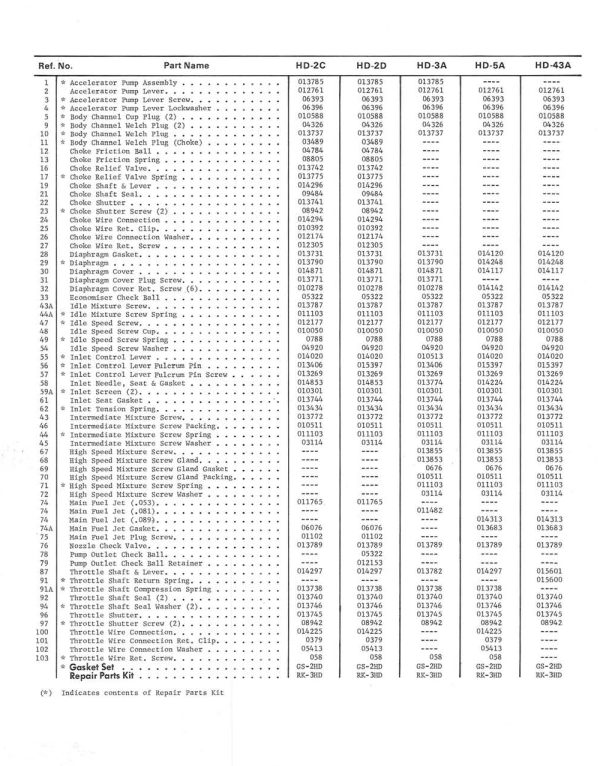 | 3 | 2540 | * Accelerator Pump Lever Screw | 06393 | 06393 | 06393 | 06393 | 06393 |