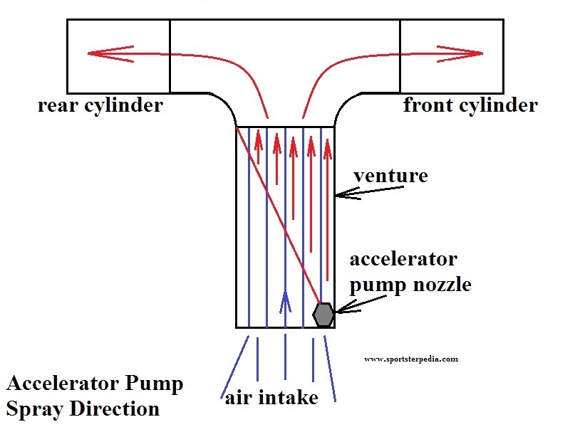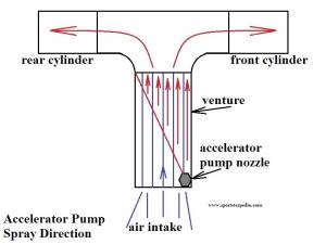 - Accelerator pump system not working properly. See Accelerator Pump System above.