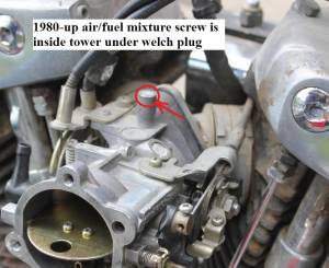 During the mid 1979 model season, HD makes a recommendation to dealers for corrective measures regarding the carburetion and ignition system on (1100, 1200 and 1340cc) models with emissions control design changes. They operate with leaner air/fuel mixtures and are more sensitive to carburetor mixture settings / ignition spark. 107).