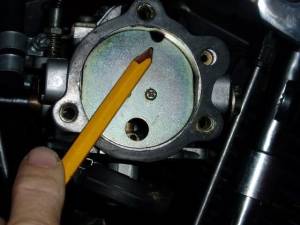 You may get smoother running by adjusting this screw as it adjusts the flow of gasoline at idle. 11)
