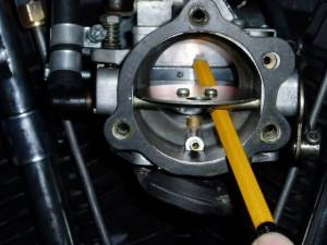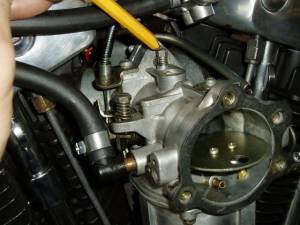 (on some bikes this will not be necessary) With the engine cold (so you do not burn your fingers) turn the pilot screw in clockwise until it is gently seated.