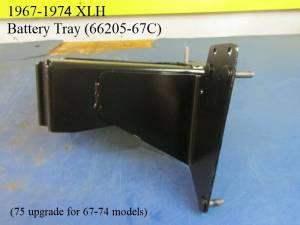 This battery tray was for parts order starting in 1975 for use on 67-74 XLH models.