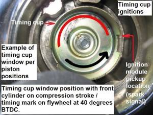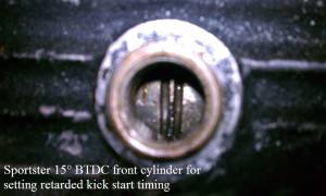 - The double straight lines are 15° BTDC front cylinder (used to set retarded kick start timing).