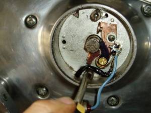 - To set the points gap, loosen off that pesky bolt in the middle of the points cam VERY CAREFULLY.