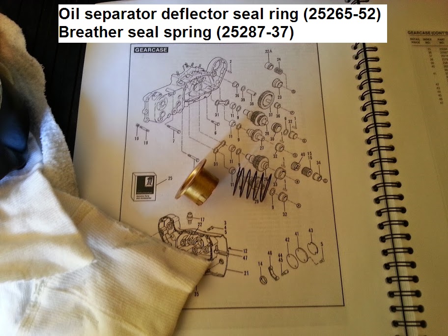 The original gasket was updated in Nov. 1979 with a short slanted slot added to match the gearcase modification in L1979-E1980 models. 17)