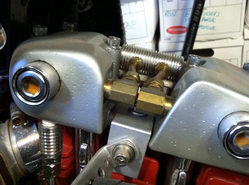 The trickiest part is making a shortened tap and keeping it dead on true to both holes so nothing binds on assembly of the crossover oil line.