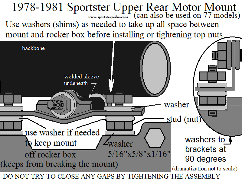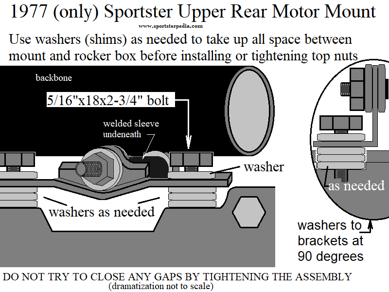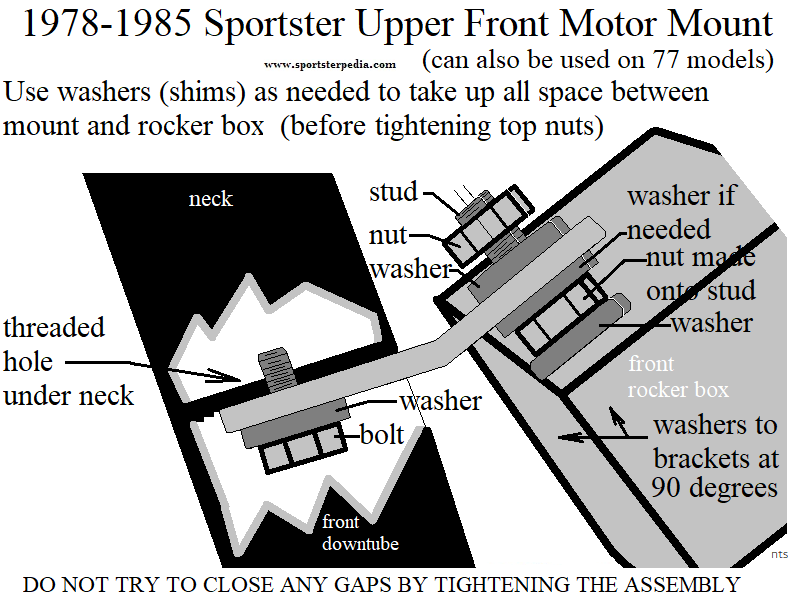 Click Here to reference for more detailed information on top mounts per year model. - The parts books “hint” thru illustration that washers can be used between the frame and upper front motor mount if needed to take up space as needed.
