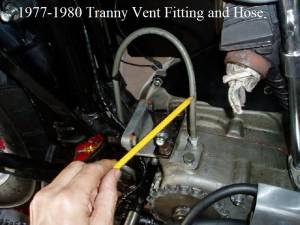1977-1985 models vent out the back of the motor from the top of the transmission near the rear motor mount just behind the solenoid (1/4” hose fitting).