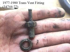 - 1977-1980 models use a fitting (34744-77) with a SAE 3/8” x 16 (x app. 7/16“) bolt pattern that has a 3/16” hose nipple on the other end.