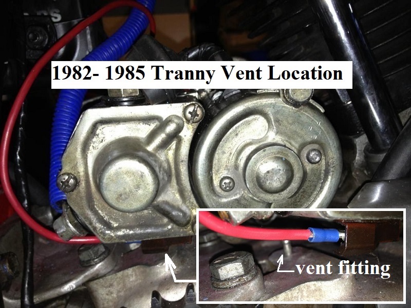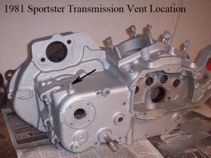 This coincides with a change in starters in 1981.- The 1981 vent nipple is on the top right of the case just under the end of the starter solenoid.