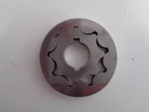 - The pin in the gearshaft sticks out into the square recess in the inner gear but doesn't hold the gerotors in place.