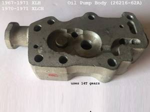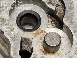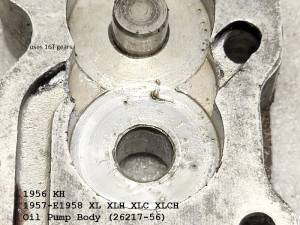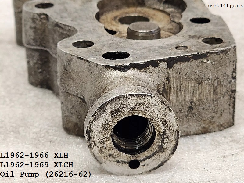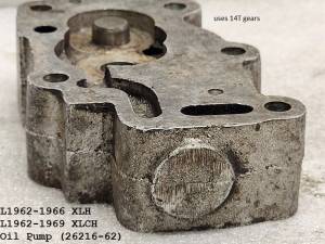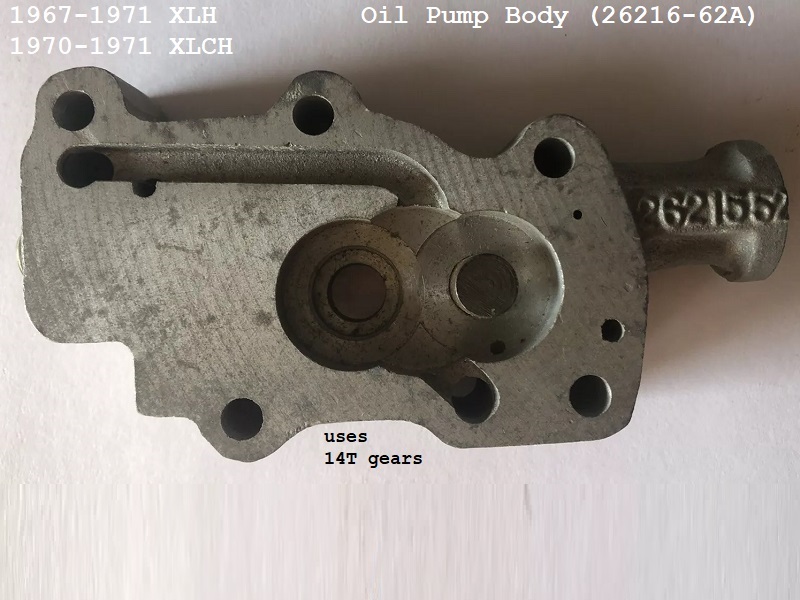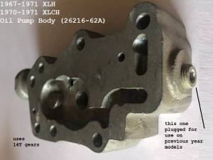 • 1967-1976 XLH and 1970-1976 XLCH deleted the top rear feed fitting and revised that cast shut hole for a feed oil re-route to the pump's rear side.