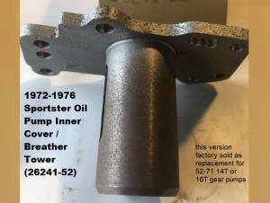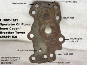 1972-1976 production K and Sportster models use inner (upper) pump oil pump cover (26241-52).