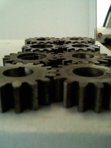 The scavenge drive gear is counter-bored for the split washer (half moons).