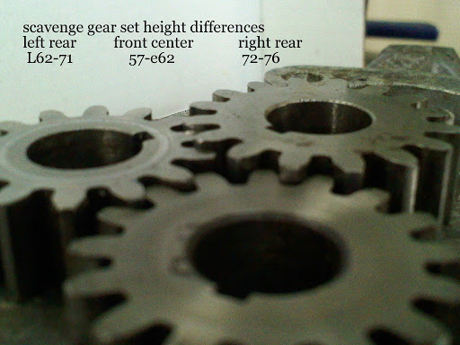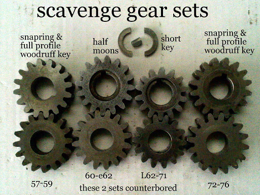 The scavenge drive gear is counter-bored for these half moons and the woodruff key is shortened so it won't interfere with the half moons.