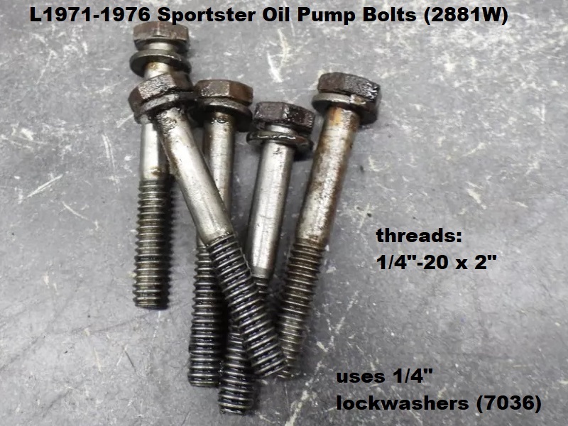 L1971-1976 production Sportster pumps used 1/4“-20 x 2” bolts and lockwashers.
