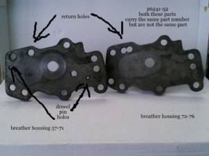 • With the correct knowledge any 57-76 pump, or parts of them can be mated to any 57-76 cases. But the combos can get confusing. 2)