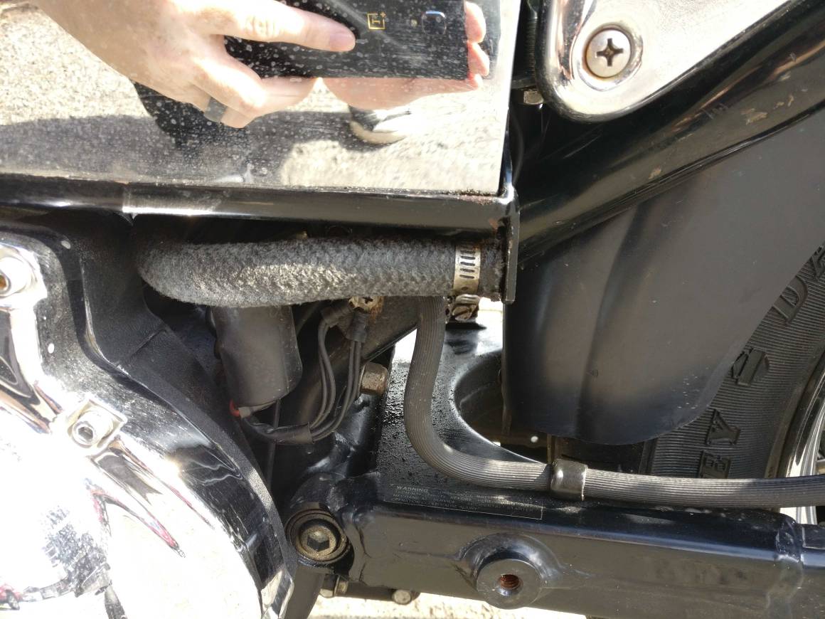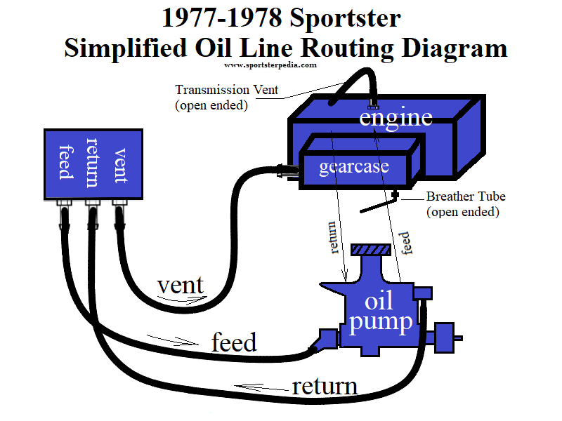 Click here for more information on the trans/primary vent in the Sportsterpedia.- 77-80: The hose should run straight up under the seat and then loop back down (without kinks).