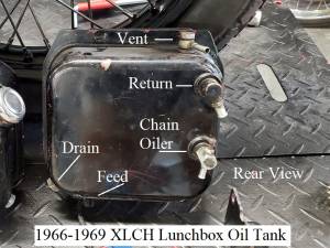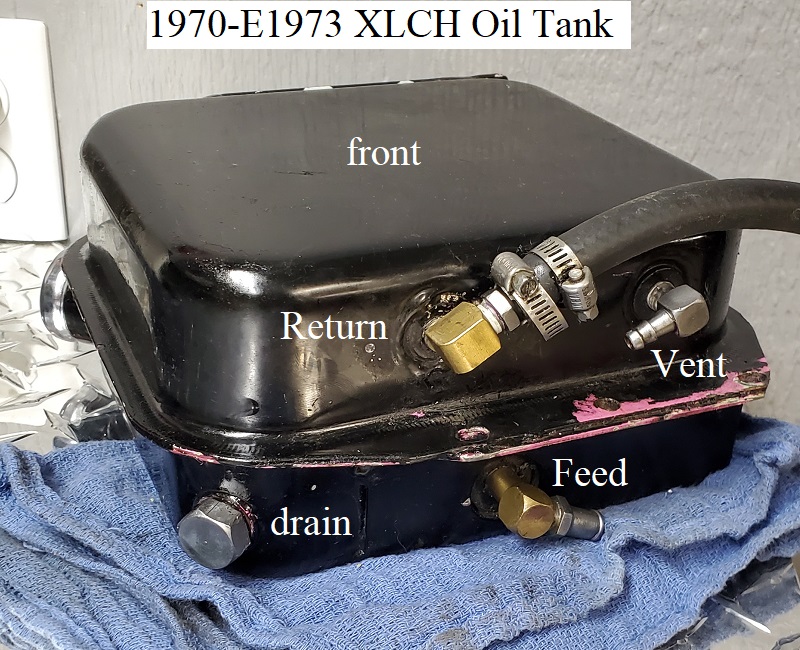 1957-1982 OEM oil tank models have a threaded plug screwed into the tank either on the bottom or on the side at the bottom.