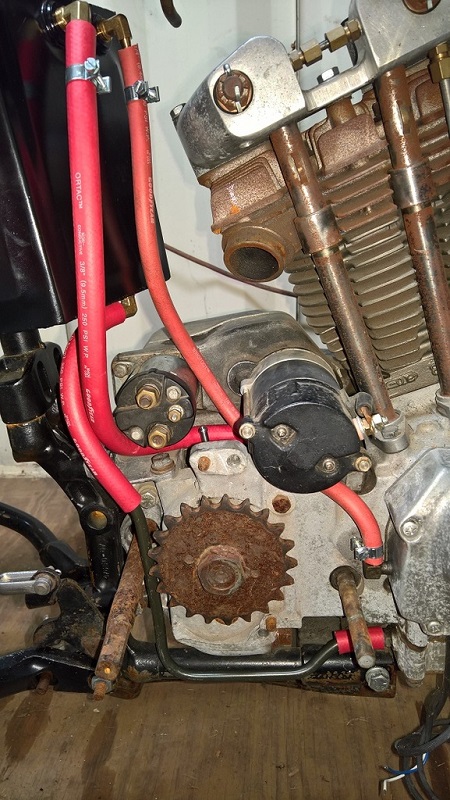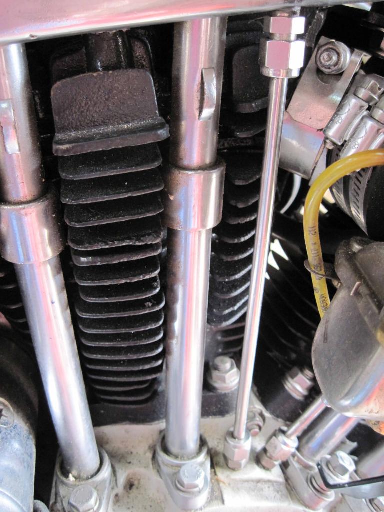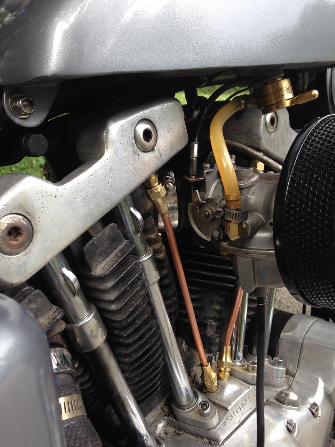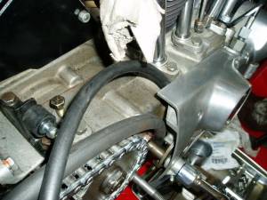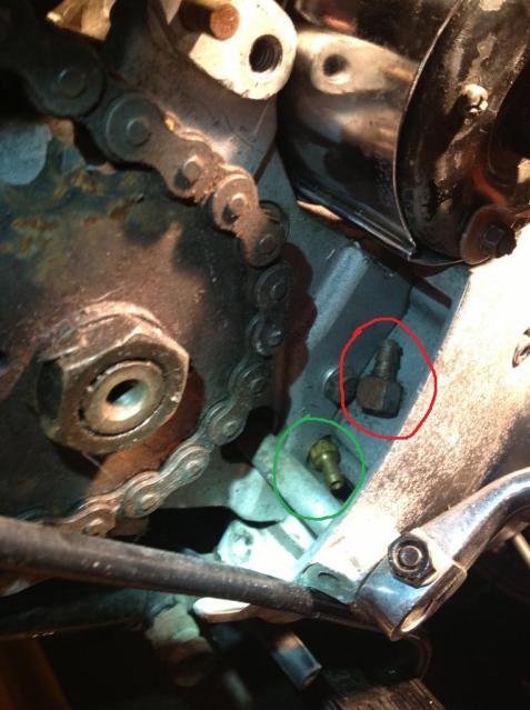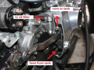 - Oil feed from the tank is on the top of the case behind the rear cylinder (rear fitting).