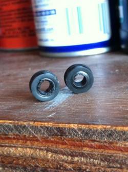 Tightening the nuts will seat the rubbers. Light grease on the rubbers will help.