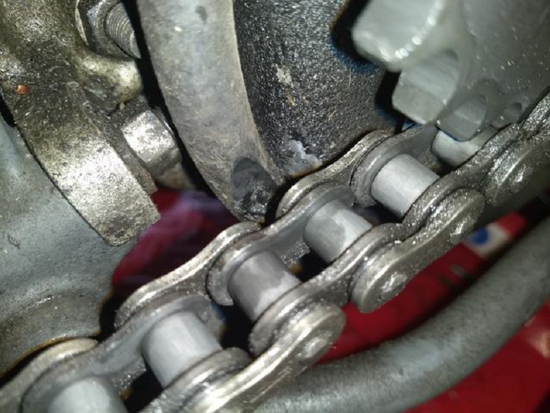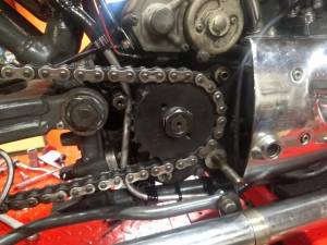 | Feed line behind the chain on 73 XLCH 9) | Missing clamp allows the chain to rub the hose. 10) | A steel line was used to replace the rubber hose. 11) |